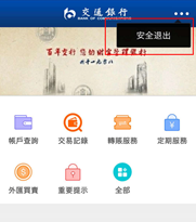 (i) 如阁下想登出「网上银行服务」,请勿直接关闭浏览器,应按右上方目录的「登出」键离开,以确保网上服务得到妥当的保障。